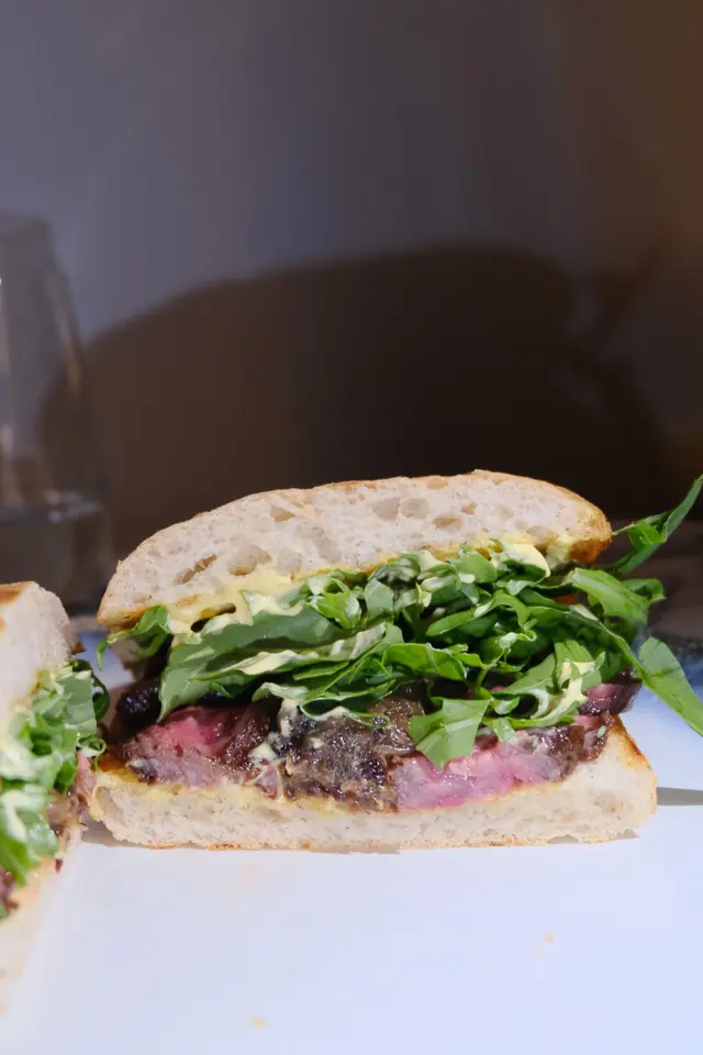 Ciabatta + 大量新鮮火箭菜 + 半熟粉嫩和牛扒