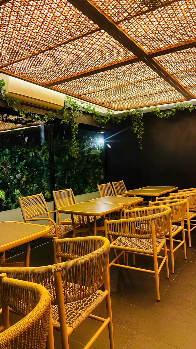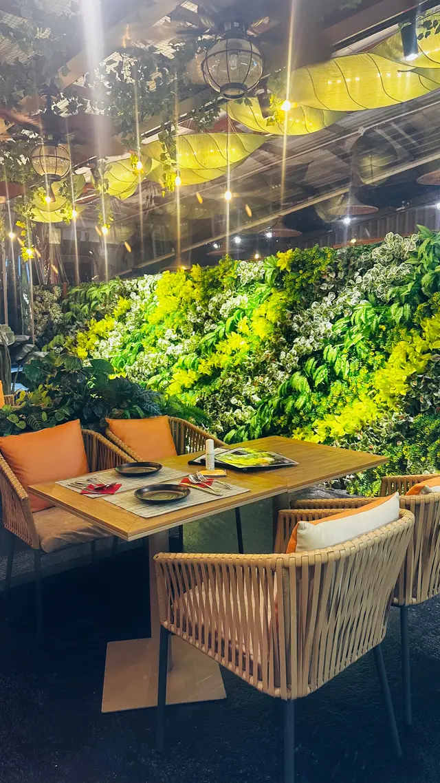 餐廳主要行大自然森林風格,大量綠色植物佢為主調,加上木系餐桌同埋藤椅配合。睇上去好舒服,有人一種遠離塵囂嘅感覺。鍾意打卡嘅你就啱晒啦