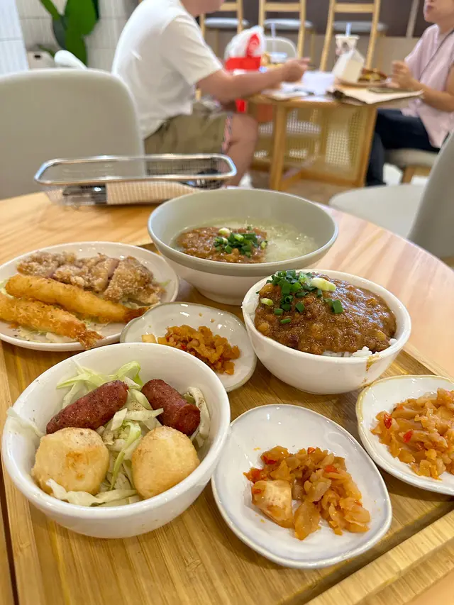 點了一個米粉還有便當 不得不說 配菜真的很出色 一個人就把配菜給炫完了😂😂😂完全不給隊友留一點