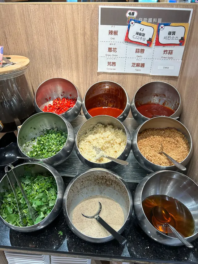 * 醬料選擇唔少,除咗有蒜蓉、炸蒜、辣、芫荽,仲有辣醬、麻醬。不過佢提供嘅匙羹比較大,大家夾辣椒嘅時候要小心唔好一次拎太多啊~