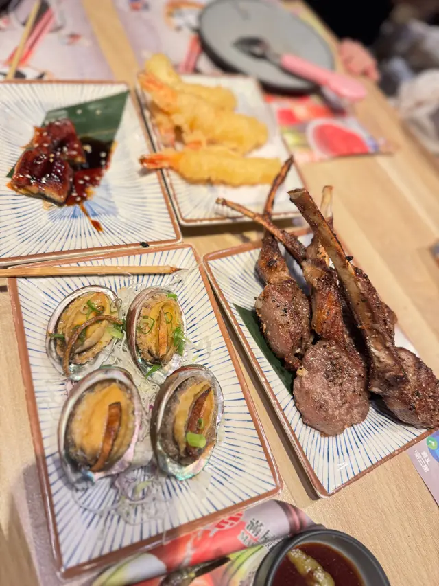刺身如甜蝦、帶子和三文魚都相當新鮮,特別推介的赤蝦更是又彈牙大隻。壽司方面,焦糖鵝肝壽司外脆內軟,海膽手卷鮮甜可口,大家一定要食埋個三文魚花之卷。