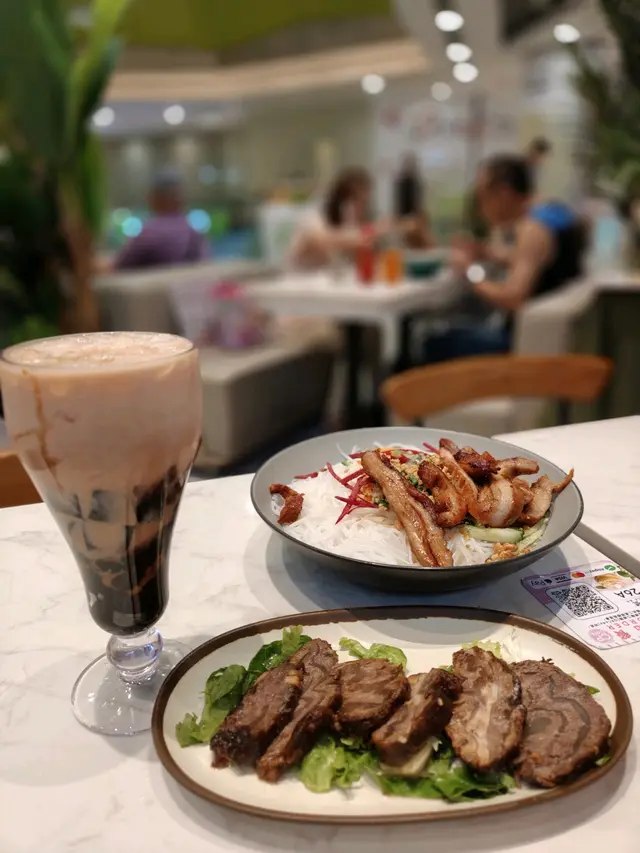 豬頭肉炭烤得焦香帶嚼勁!淋上魚露酸甜汁,檬粉清爽解膩,夏日必點🔥