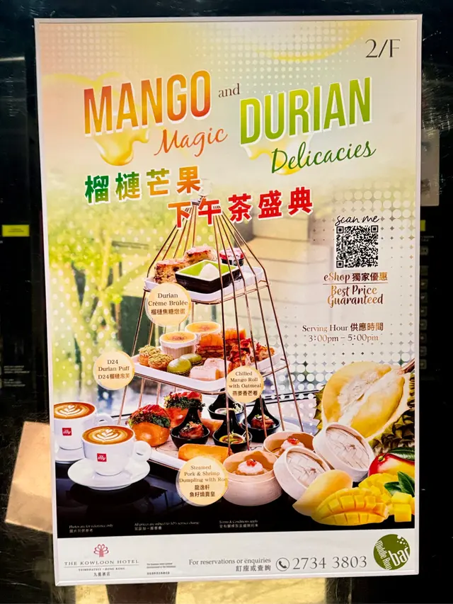 尖沙咀九龍酒店 以當季榴槤及芒果全新推出中西下午茶套餐,即日起至2024年10月31日更有平日買一送一優惠,人均連加一$200有找😍!