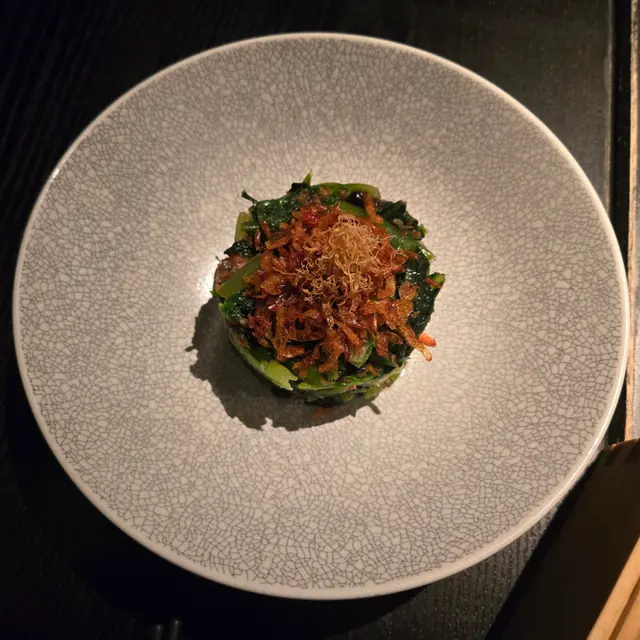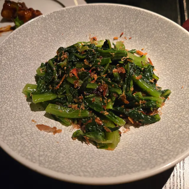 每餐都要吃一份蔬菜才健康,所以我們來一份豆鯪鯪魚醬拌香麥菜,豆鯪鯪魚醬拌香麥菜是冷盤料理,油麥菜口感嫩脆,保留蔬菜本身的鮮綠與清甜,油麥菜淋上以豆豉鯪魚調和的拌醬香氣四溢,油麥菜的鮮美與豆豉鯪魚醬的鹹香完美融合,使油麥菜變得更有層次。