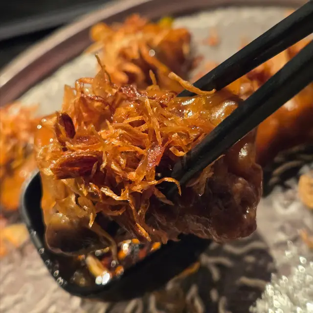 怪味鱈魚是朋友挺喜歡的一道主食,怪味鱈魚外面包裹的醬汁甜甜鹹鹹,但不會過於厚重而導致非常膩口,調味恰到好處,許久沒吃鱈魚的朋友又被怪味鱈魚外香脆內細緻滑嫩的肉質給圈粉,嘴中細嚼讓人回味無窮。