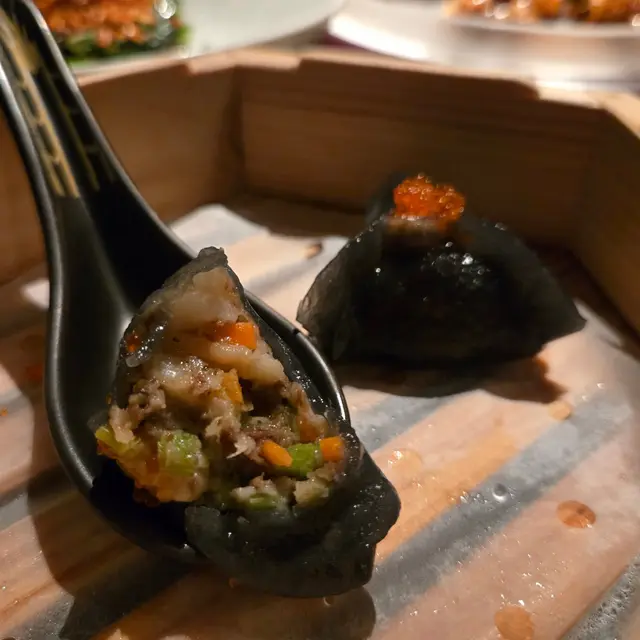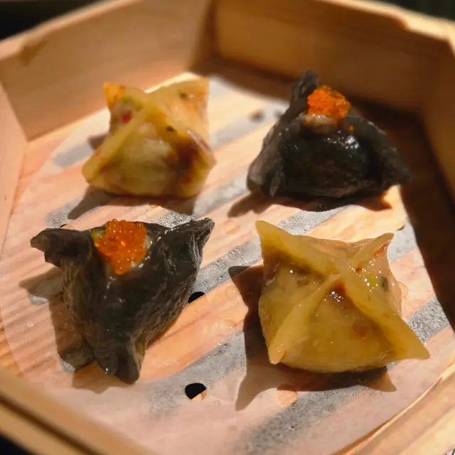 粵式點心講究「色、香、味、形、鮮」,Dim Sum Library完全把這精髓發揮得淋漓盡致,香樁菜蝦餃上面撒上一些蟹子,看起來令人食指大動。香樁菜蝦餃鮮度破表,香樁菜微脆清香,蝦肉越咀嚼則越有海味帶彈勁,還有豐盈的蝦汁。