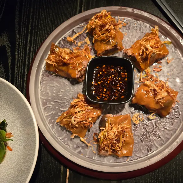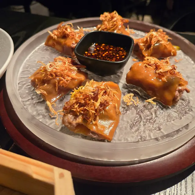 秘製牛肉腸也是一道考驗師傅功力的點心,秘製牛肉腸熱呼呼的放入口裡,絕對是人生中的享受之一。秘製牛肉腸牛肉給得不少,腸粉皮爽滑,撒上炸紅葱頭絲,淋上甜鹹的葱頭醬油,咕嚕一下子就滑入喉嚨,真是正點。