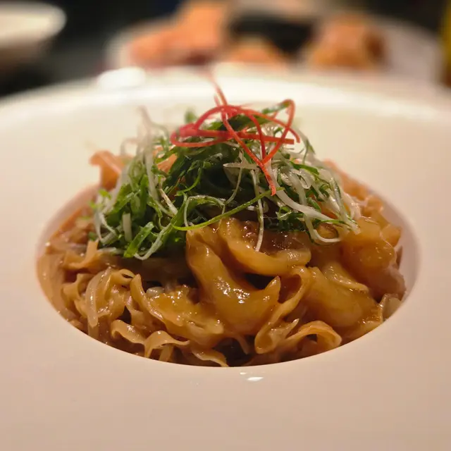 Dim Sum Library不能少的就是花膠撈麵,花膠撈麵料多實在,用力往下挖去,花膠通通跑出來,這撈麵超補。花膠滿是膠質,入口輕咬就化開,完全不需費力咀嚼,花膠鮑汁亦滲透撈麵之中,用唇齒留香來形容花膠撈麵也不為過。