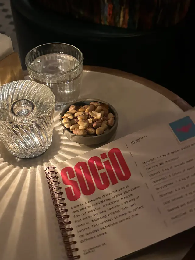 事關我哋唸住去食dinner嘅舖頭大排長龍,就嚟咗socio happy hour,點知入到嚟個vibe勁正, bartenders一見到我哋入嚟就係咁俾心心🫶🏻佢哋仲好鍾意同人一齊影相,傾偈 (佢哋仲會送你free shots)真係好Fun!我會話真係啱曬Happy Hour(同埋係E人天堂啊!) 如果係I人…我會話佢哋d花生都幾好食(真·花生)~