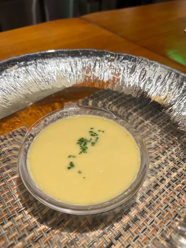 特別選用以雞蛋殼打造嘅酒杯,工藝級藝術品~先可以完全發揮配置嘅清酒。這款清酒必須釀製三年以上,有杏仁果香,仲對應返菇菌類嘅菜式。