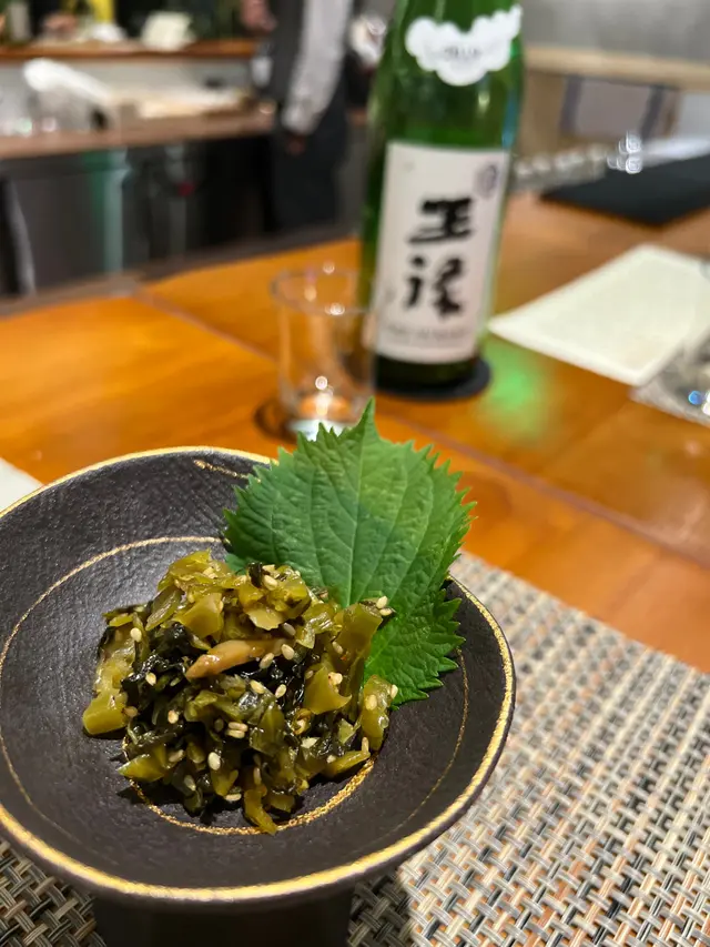 「浦霞」好襯海產類動物如魷魚。以杉木桶盛載釀製,清新有米香。來自富山灣的螢光魷魚,配合以牛油炒香的日本蘆筍,珍珠筍,米通,神級配搭,杯底竟然有超驚喜嘅潤腸粒。味道濃郁甘香,配襯返魷魚嘅鮮味~超水準!