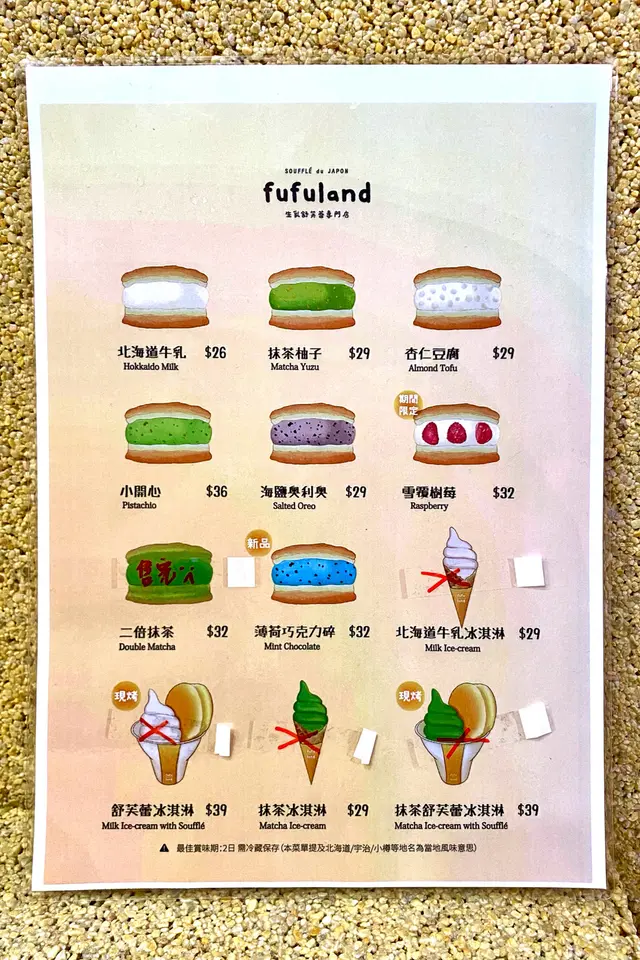 fufuland|疏乎厘班戟小漢堡 Voracious等级42025-04-01128 浏览 关注 主打「生乳舒芙蕾」的fufuland早前在內地一炮而紅,憑着有如迷你漢堡一樣的可愛賣相俘虜人心,近年進軍香港更旋即於旺角、銅鑼灣、觀塘、元朗、屯門等多區遍地開花。3香港店同樣有供應北海道牛乳、抹茶柚子、杏仁豆腐、海鹽奧利奧等多款口味,更不時會有港式奶茶、雪覆草莓等期間限定款式。 雪覆晴王 ($32)雪覆晴王$32班戟相對一般梳乎厘而言空氣感低,較為結實並略帶彈性,原味忌廉質感幼滑,配以新鮮晴王青提香甜清爽。 小開心 ($36)小開心$36開心果忌廉以奶香為主,加上開心果碎帶出淡淡果仁鹹香。 薄荷巧克力碎 ($32)薄荷巧克力碎$32薄荷忌廉濃度恰到好處,混合粒粒朱古力碎口感豐富。以上食记乃用户个人意见 , 并不代表OpenRice之观点。1分享fufuland|疏乎厘班戟小漢堡 fufuland https://s.openrice.com/QrLT0vZ9R00检举 张贴 评分4味道4环境4服务4卫生4抵食推介美食薄荷巧克力碎$32雪覆晴王$32小開心$36用餐途径堂食