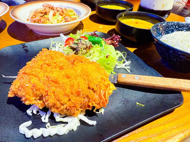 主食揀咗signature嘅千層吉列豚,上枱超厚切,切開十分脆,裡面係一片片豚肉卷成嘅肉扒,調味食到淡淡嘅黑椒香,配埋咖喱飯超下飯。