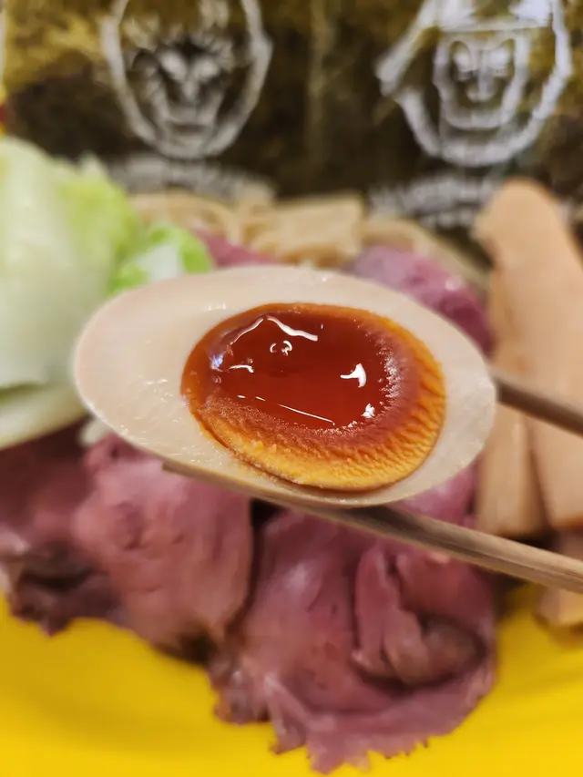 溏心蛋部份,跟半隻,真係有d小氣,咁貴嘅定價,竟然跟半隻蛋!味道都夠,蛋白有入味,主要係味醂嘅味,蛋香係夠嘅。不過如下圖,生熟度有d偏熟,我唔太鍾意,生少少會更好。