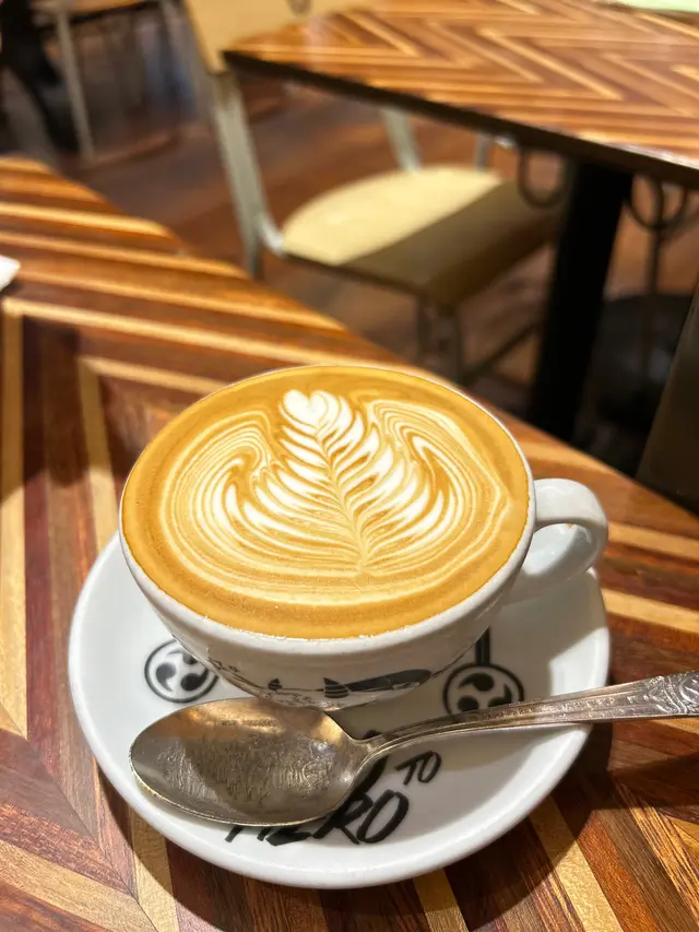 下午茶餐飲跟配嘅 Flat White 都幾大杯