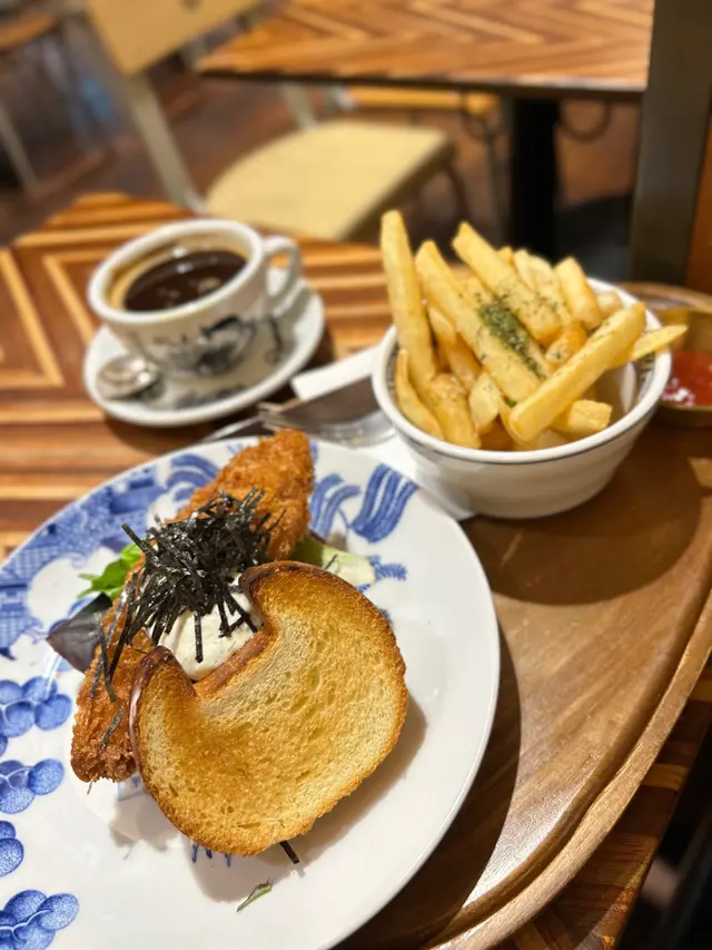 吉列魚柳喵多士三文治 + 迷你薯條 + Flat White