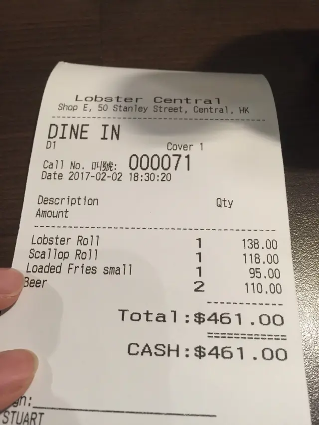 小小店面,約有20-30個快餐形式的吧枱座位。我到的時候還未到7點,只有三數名客人。先點了lobster roll, scallop roll, loaded lobster fries 以及2枝啤酒,共$461。