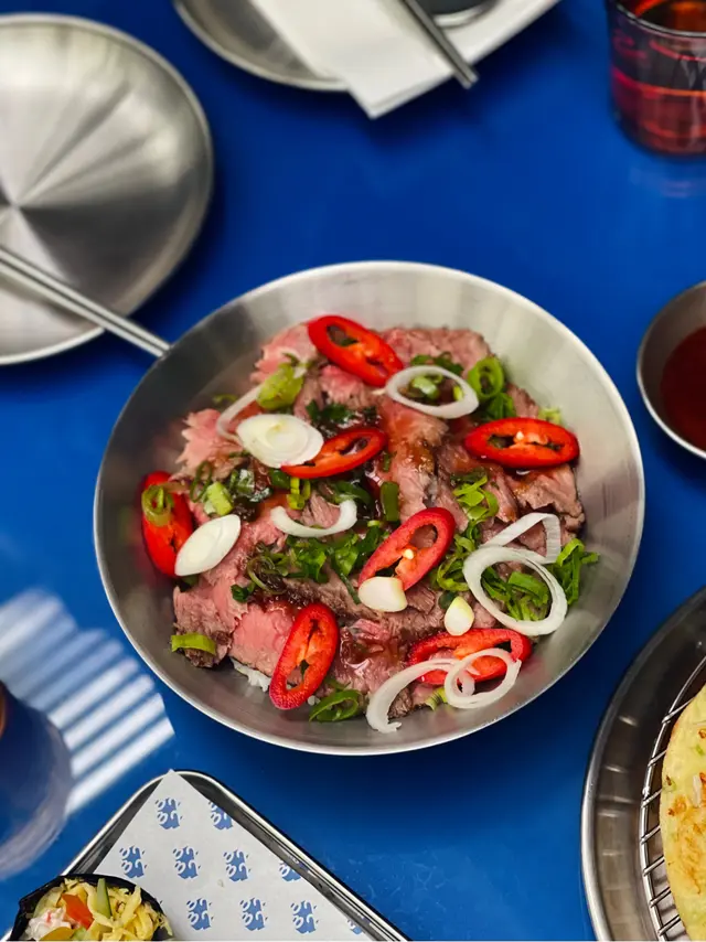 wagyu slices, rice, chili, spring onion, bulgogi sauce
