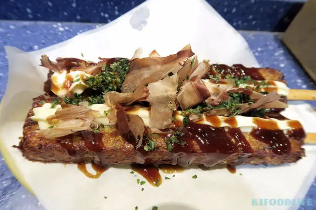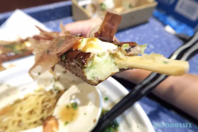 加左個《大坂燒串》($28),一黎有兩大條,食落其實就係大坂燒既質感,都係粉加上菜同肉既棒,不過特別少少串上,落左好多醬料好香。
