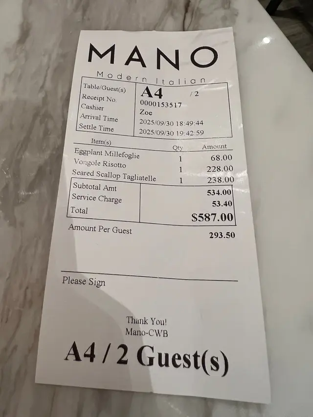 😋L Suare樓上西餐 食物質素環境並重😋 zcbdkdj等级42025-09-30700 浏览 关注 白酒煮蜆配墨汁意大利飯 - 蜆肉肥美,處理得好乾淨,一大排咁擺盤好吸引,白酒香突出,墨汁意大利飯啖啖墨魚咸香,又有咬口1香煎北海道帶子三文魚子龍蝦汁扁意大利麵 - 帶子煎得好出色,剛剛熟食落一絲絲,扁意大利麵蛋香十足,條條都掛到龍蝦汁,好香口好惹味香烤淺層芝士茄子 - 食落有層次,蕃茄同芝士味道好夾,做法幾特別2Mano環境幾靚,裝修走輕奢復古風,casual得嚟有格調,但入座嘅時間已經幾full,所以影唔到,以免影到其他食客,服務唔錯,有籃俾客人放袋,整體性價比不俗,值得推介以上食记乃用户个人意见 , 并不代表OpenRice之观点。赞好分享😋L Suare樓上西餐 食物質素環境並重😋 Mano (The L. Square) https://s.openrice.com/QrLT0dw5U00检举 张贴 评分4味道4环境4服务4卫生4抵食用餐途径堂食