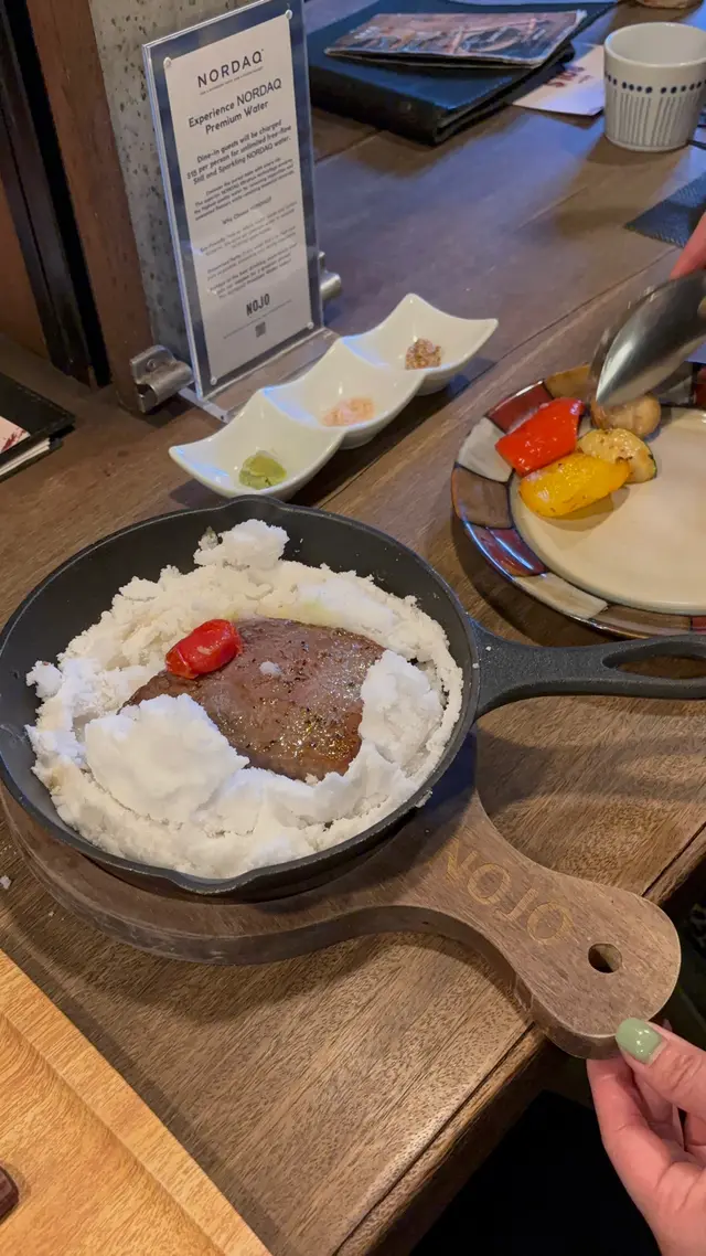 最後壓軸係和牛鹽釜焼,火候剛好,粉紅色澤靚,帶有淡淡鹽香,提升咗呢款優質和牛嘅層次。