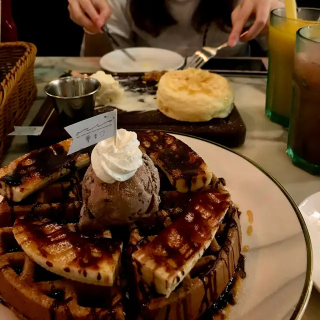 📍Ocio · 主菜&甜品並重 🏅 hk.eat.formula等级32022-07-17169 浏览 关注 🔖 Ocio 係一間萬能嘅Cafe,入面可以點唔同種類嘅菜式,有意粉、西餐、甜品、雪糕、多國小食,可以話係主菜與甜品並重嘅餐廳,適逢夏天,梗係試吓佢哋嘅專門甜品。 💬 焦糖香蕉朱古力窩夫 $68今次叫咗兩個甜品,首先呢朱古力窩夫係成個完整咁上,有4塊waffles加上朱古力雪糕球,淋上朱古力醬,熱嘅焦糖香蕉鋪滿喺窩夫度,熱力將雪糕慢慢溶喺窩夫同香蕉上,冰火兩重天,爽呀!💬 蜂蜜雪山pancake $68而呢個有足足兩層約4cm嘅熱香餅,口感軟綿綿,蛋香味非常濃郁,加埋佢嘅蜂蜜一齊食,幸福滿瀉,蜂蜜同pancake嘅配搭可以話係天衣無縫,仲有雲呢拿雪糕俾你溝埋一起食,雙重滋味,正!以上食记乃用户个人意见 , 并不代表OpenRice之观点。赞好分享📍Ocio · 主菜&甜品並重 🏅 Ocio (煙廠街) https://s.openrice.com/QrLT0vHT400检举 张贴 评分5味道4环境3服务4卫生5抵食用餐途径堂食