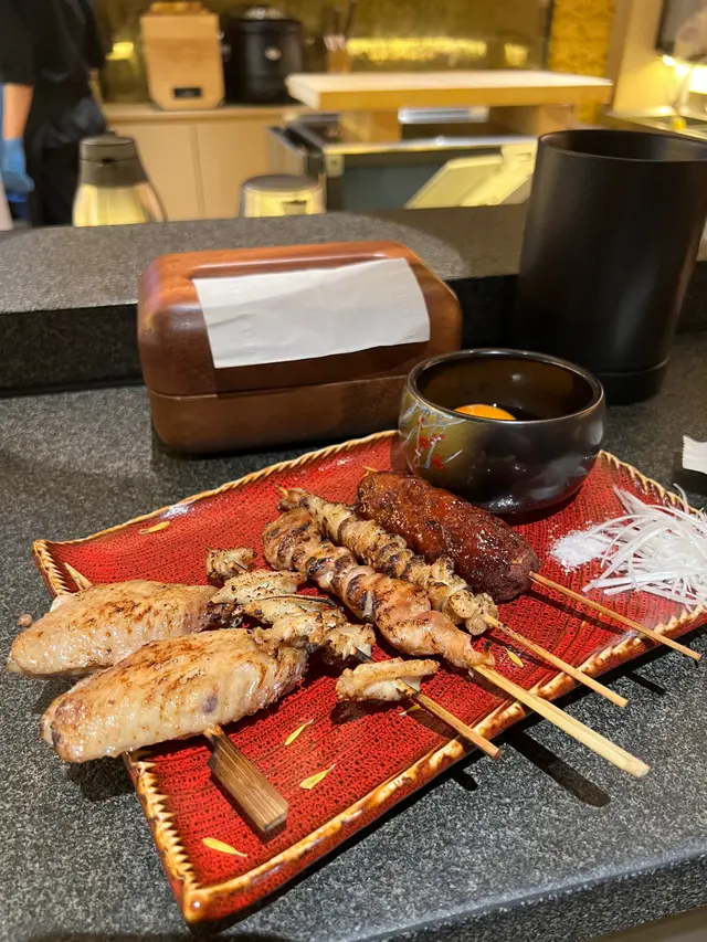 餐廳環境就係一個正方形,好似omakase既坐位,每一道食物都整得好精緻咁上枱,儀式感十足,枱面有各種調味料比客人食串燒用☺️