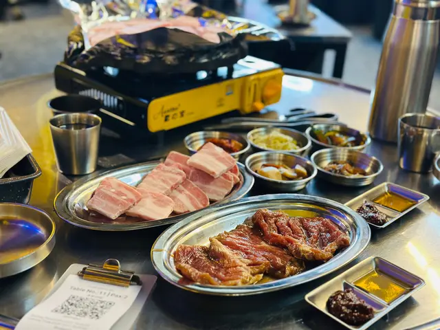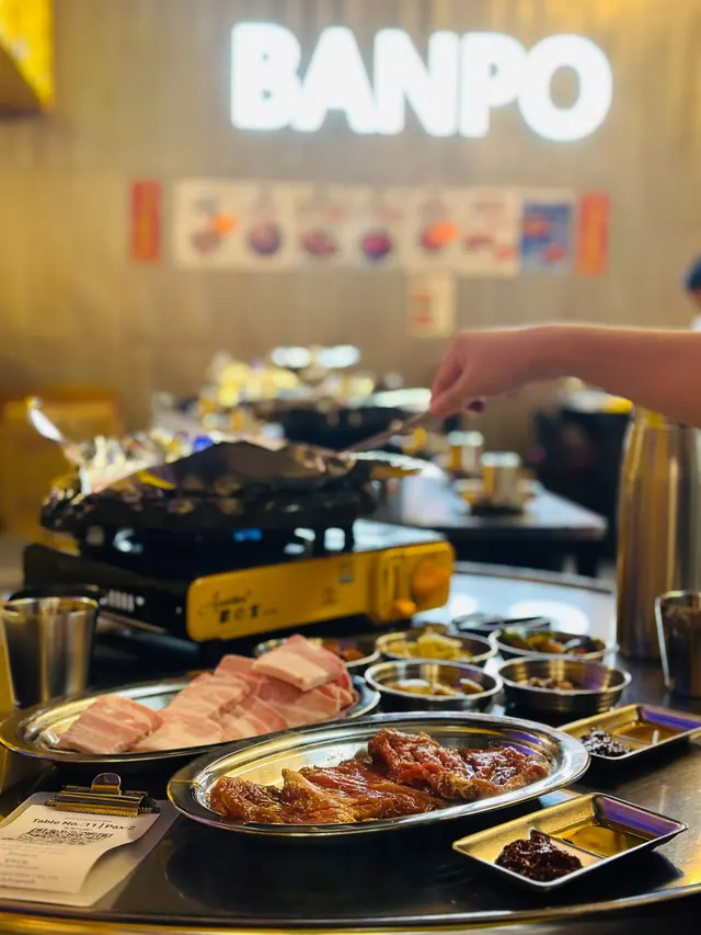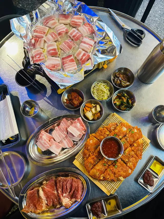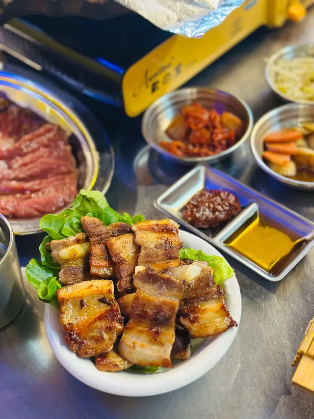 二人份量起,好似係每枱都有點!waiter 行過嚟攞住滿滿豬腩種感覺好滿足😂 waiter 會幫我地燒一陣,再比我地玩一陣,自己又燒一陣,大概8分鐘就燒好一轉。中間oppa 好好客,佢親自過嚟教我地燒,同我地講點為止燒好。