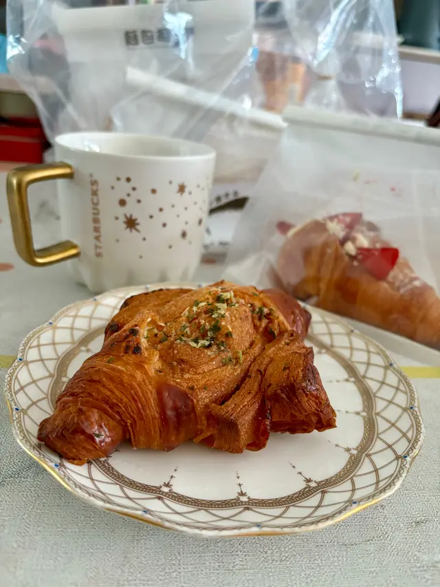 均價 10+💰的牛角包居然能做到酥到掉渣🎊有巧克力 / 芝士 / 原味等多種口味🍫🍓早餐下午茶配咖啡簡直Prefect呀🙌🏻🙌🏻和我家兔哥也很搭喔😚😙