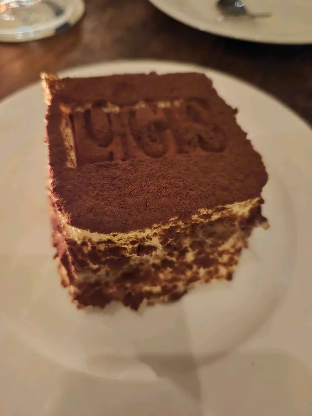 這款經典的意大利甜品呈現得十分精緻。濃郁的咖啡味與柔滑的馬斯卡彭奶酪完.美結合,口感輕盈而不膩。上面的可可粉增添了香氣。