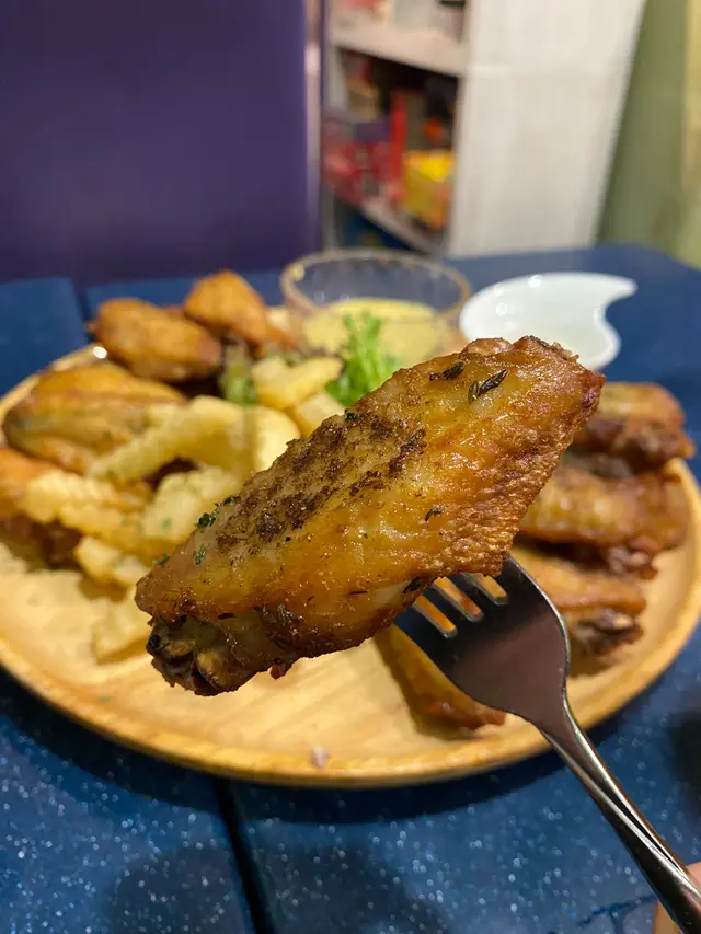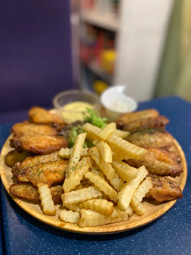 雞翼拼盤是這家咖啡廳的另一個亮點。這個拼盤包括了黑松露雞翼、蜜糖芥末雞翼和炸薯條。黑松露雞翼散發著濃郁的黑松露香氣,蜜糖芥末雞翼則結合了甜蜜的蜜糖和微辣的芥末風味。搭配脆口的炸薯條,這道拼盤給人一種美味和滿足的感覺。這個拼盤的多樣性和豐富度讓人愛不釋口。