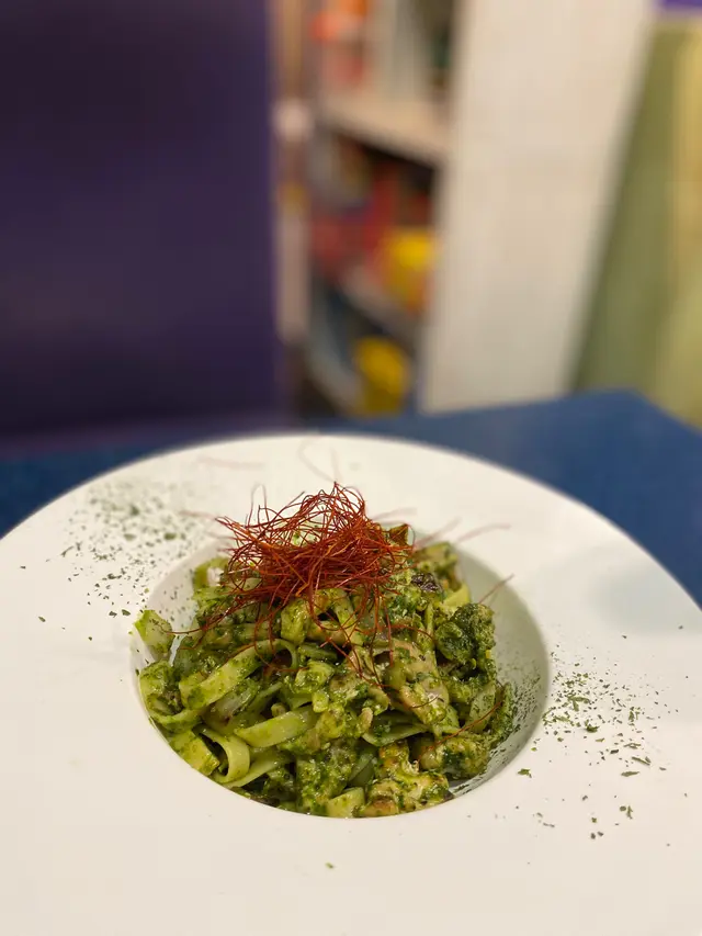 其次,意式青醬雞絲炒闊條麵展現了Rimi Cafe對意大利料理的獨特詮釋。這道菜以嫩滑的雞絲和炒麵搭配濃郁的青醬,口感豐富而濃郁。青醬的香氣和味道完美融合在一起,給這道菜帶來了一種獨特的風味。