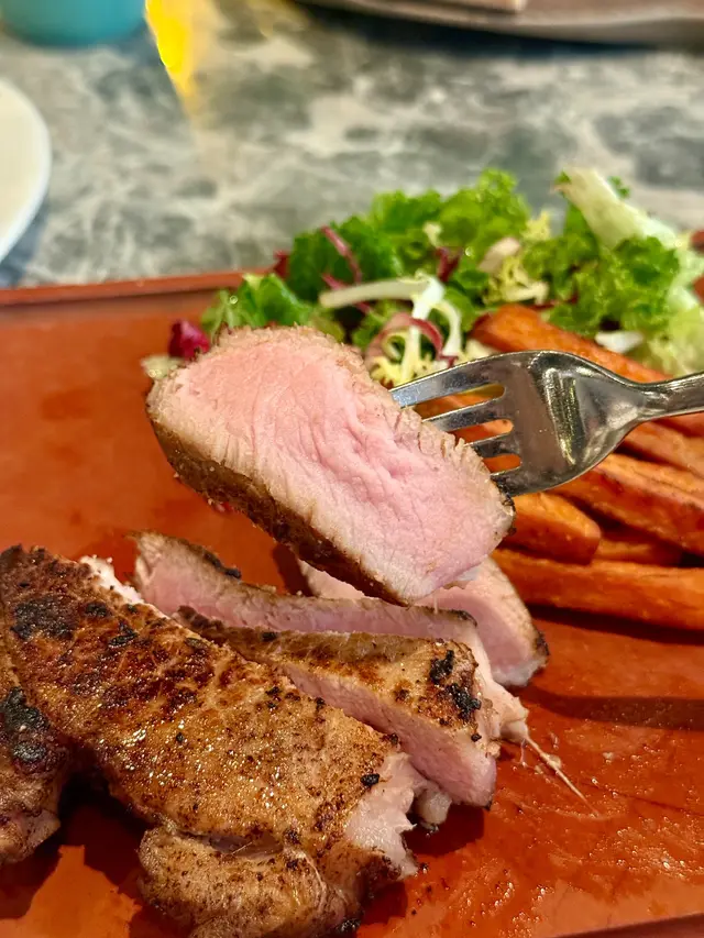 加拿大豬鞍係以slow cook 模式去煮,所以會有少少粉嫩,但佢係屬於正常嫁!肉質鮮嫩多汁,燒烤火候掌握得宜~份量唔算好多,但成落都好夠。sides 仲有蕃暑條同埋沙律,可以中和番個口氣~