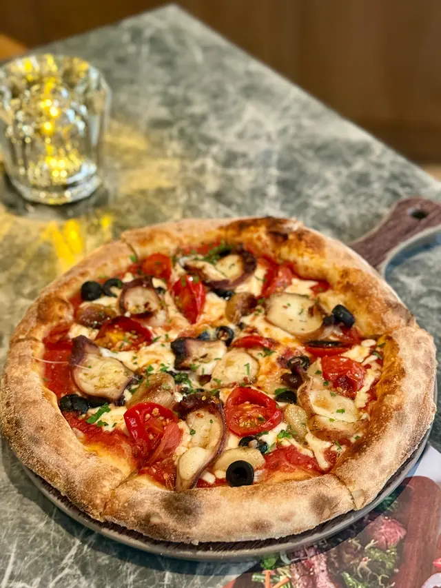 八爪魚pizza(9吋)令人驚喜,餅底薄脆帶焦香,八爪魚鮮嫩彈牙,辣味番茄醬係幾夾,有豐富層次。