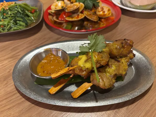 炭烤香氣撲鼻🔥,雞肉醃得入味又嫩滑,沙嗲醬濃郁帶花生香🥜