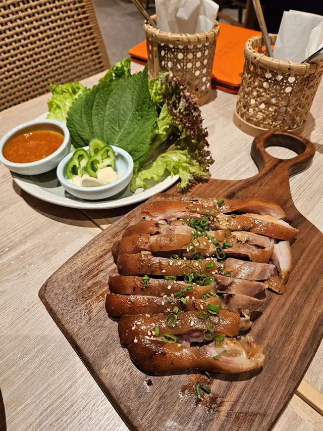 1)半份韓式豬手,滷得夠淋得嚟又唔膩,皮爽肉滑,包住生菜食超正。