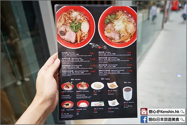 另一面是餐牌,基本款HK$98,全部配料都加要HK$149?我看到的時候不禁倒抽一口涼氣,不計龍蝦鮑魚拉麵那些,以香港賣的傳統日式拉麵來說,這絕對是天價!特別是我在現場問麵量多少,得到的答案是100克,比一般拉麵更少。