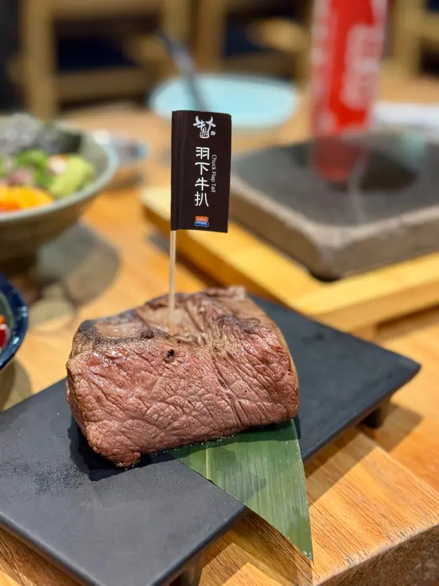羽下即是牛肩胛骨下方靠近肋骨的部位,油花分布均勻。