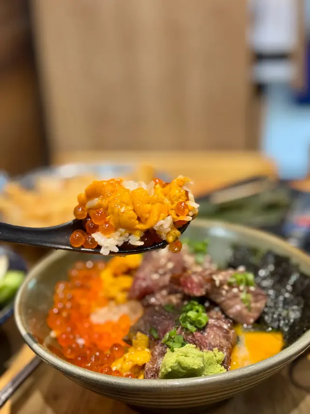 一口飯是鮮味的海膽、脆卜卜魚籽好滿足,又有軟腍燒牛肉,賣相味道都一流。