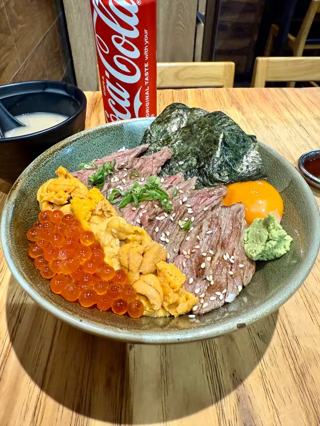 牛縣燒肉海膽丼(燒肉)$188 ,一碗鋪滿了牛肉、海膽、三文魚子的丼飯,目測已經非常吸引。