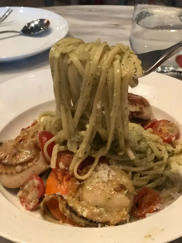 以原隻珍寶帶子入饌實在令人感動,帶子厚實,鮮味濃郁,香草醬味道恰到好處,扁意粉掛汁度滿分,真係好好味