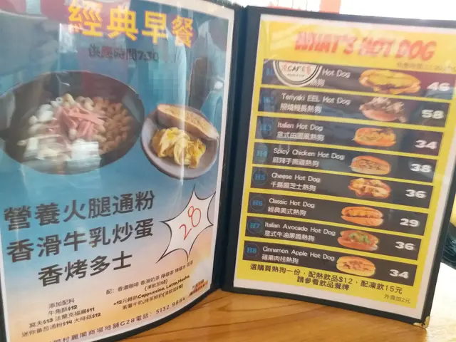 決定要$34.00嘅肉桂蘋果熱狗,加$12.00 要熱紫薯鮮奶.老公要$58.00嘅午餐,日式溫泉蛋牛脷飯,要一罐ooha汽水.