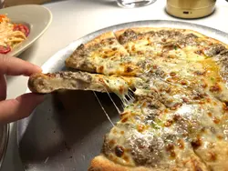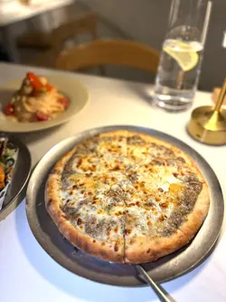 黑松露嘅香氣真係無得輸,一上枱已經成枱都係松露香!薄餅係薄脆底,餅邊烘到脆卜卜,口感滿分。上面鋪滿咗各式野菌同拉絲芝士,每一啖都係濃郁嘅松露同菌香,好滿足。就算放涼少少,個餅底都依然保持到脆度,好出色。