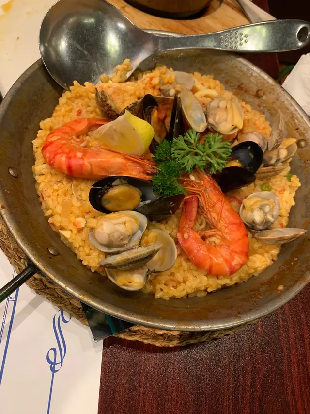 係網上見到呢間係澳門現時唯一一間有正宗葡國菜+西班牙菜嘅餐廳,幾特別下,心郁郁想試,拉住個frd一齊去試🤣味道真係幾正,名不虛傳今次一共點左4樣野😋1. 紅酒賓治🍷坐低第一件事點左杯酒先😌杯紅酒賓治入面啲水果幾fresh,同埋成杯酒都好易入口杯酒配西班牙燒豬肋骨,都幾夾下,味道一流👍2. 燒西班牙黑毛豬肋骨🐷豬肋骨火候岩岩好,外面有小小焦香,咬落去入面仲有好多肉汁🤩3. 大蒜煎章魚🐙一上到黎就聞到大蒜嘅香味,令人食指大動😋而個章魚新鮮又彈牙,味道唔錯👍4. 西班牙式海鮮飯🦞入面嘅材料好足!有蝦,蜆,青口等等,滿足晒鍾意食海鮮嘅人🤩啲海鮮仲要全部都好新鮮,同埋啲精華都滲透左入個飯到,連炒飯都幾鮮甜下~…Read More