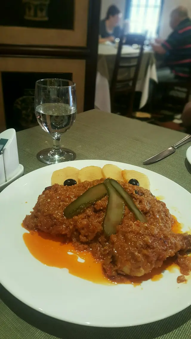 復活節同朋友一齊黎到澳門玩當然要試下葡國菜啦建議假日大家可以預先訂座,咁就慳返時間排隊呢間餐廳地理位置方便行入氹仔美食區一定見到座位亦坐得舒適 岩晒家庭朋友聚餐先提一提 餐廳既水係需要收取$30/樽飲唔飲可以自行選擇食葡菜當然要試下 馬介休球啦咸咸地炸薯蓉幾好食 留意餐牌有好多款既馬介休球*食既時候要小心有好幼細既角骨推介餐牌必點既仲有乳豬飯係炒飯底 唔好睇佢細細份 如果得兩個人食都幾膩最後想推介既就係非洲雞個醬真係幾好食我會用醬撈飯食