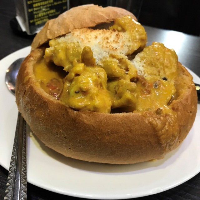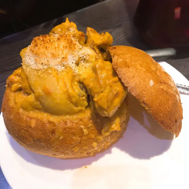 舊鋪無晒位,職員話要提早預訂,所以安排同事帶我地行去官也街附近分店,鋪頭好乾淨,職員好有禮貌🌟檸檬白酒煮蜆D蜆唔會過熟,好肥同鮮甜,加檸檬煮酸酸地好開胃,忍唔住不停飲個湯🌟麵包焗葡國菜麵包焗到好乾身,超脆,職員等我影完相就用鉸剪剪開,麵包焗到好乾反而吸多左醬汁,雞有少少雪味,份量好大,味道正常🌟葡式乳豬釀飯乳豬薄皮,唔似中式傳統乳豬甘會好脆皮,系屬於半脆半軟,醃得入味,最特別系個飯底,好多唔同味道加埋一齊,可以一試二個人叫左三樣食物都食唔晒,而且價錢好平,呢間需然食物唔算系高水準,但系唔難食,比起好多葡國餐廳算系好,真系每樣都好足料,價錢較平…查看更多