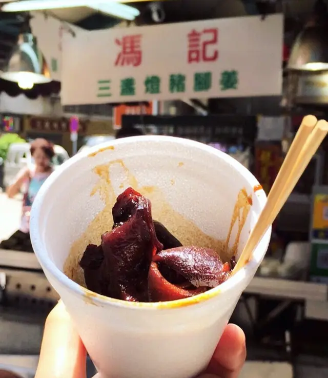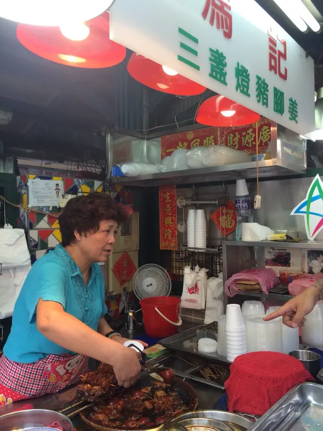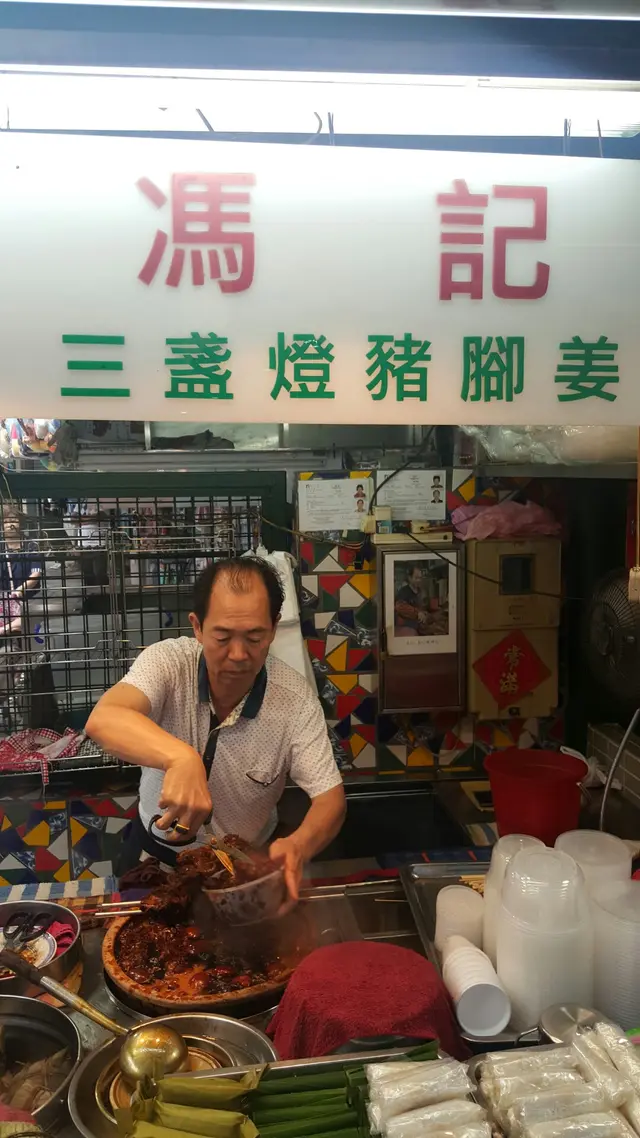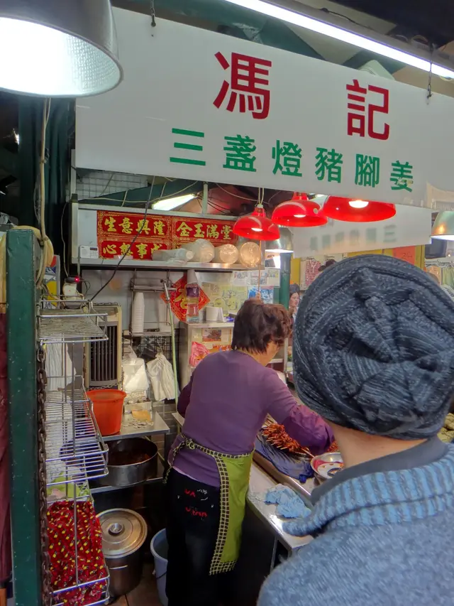 由早上到下午的幾個鐘頭,當世人還在酣睡正甜的時候,我已經吃了三餐早餐。雖然很飽,回到酒店途中,再去一下那個三盞燈附近走走,來到那個香氣四散到不得了的圓形位置,如果你有少少認知,這個是美食區,多間出名到不行的餐廳都在這裡出現,如果你好似我咁飽到嘔都仲好為食的話,你應該要來這裡。馮記三盞燈豬腳薑,和豬腦,牛肉河,墨魚丸等有這之都有番咁上下出名,未食過都聽過。當然來到馮記,你行到個counter 就嗅到那個薑醋的香,個煲野一路燒一路出味。之前吃過豬腳和蛋,當然是完全入味,就算朋友生仔我都冇乜興趣食豬腳薑,但這裡的我卻不想錯過。今次吃左咁多野後,輕輕一串豬耳便算了。聞落去已經知勁,豬耳完全滲入那些薑醋的強烈酸酸而又令人開胃的味。豬耳非常彈牙,啖啖彈性都吃到那些醋汁滲透你的舌頭。八元一大串,吃到又大串又好食的薑汁,你說香港有沒有,我看暫時咁平咁抵食,我未見到。晨光的早餐之飽肚到下午前的酸味小吃,打通了任督二脈,下午繼續食過。馮記三盞燈豬腳薑,絕對就如補給站,給了力量,讓你吃的CP值,加強到另一個level。三盞燈馮記豬腳姜新橋(三盞燈/白鴿巢)圓形地街市熟食檔查看更多