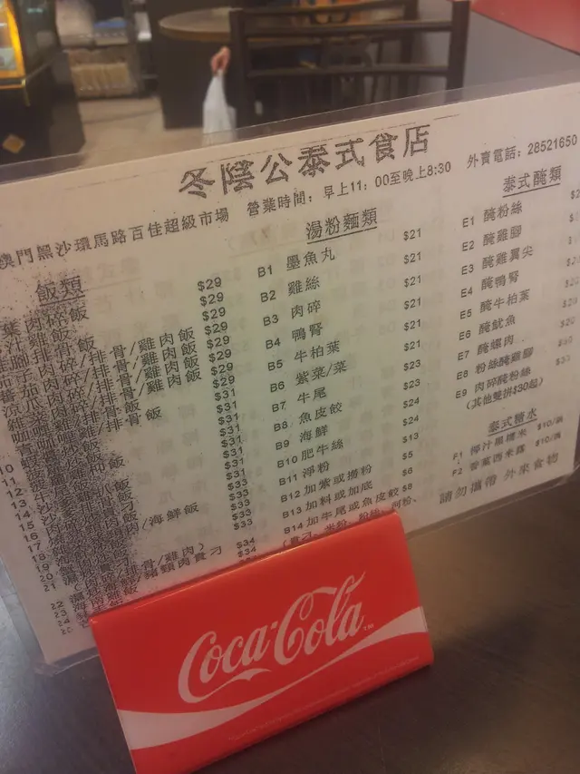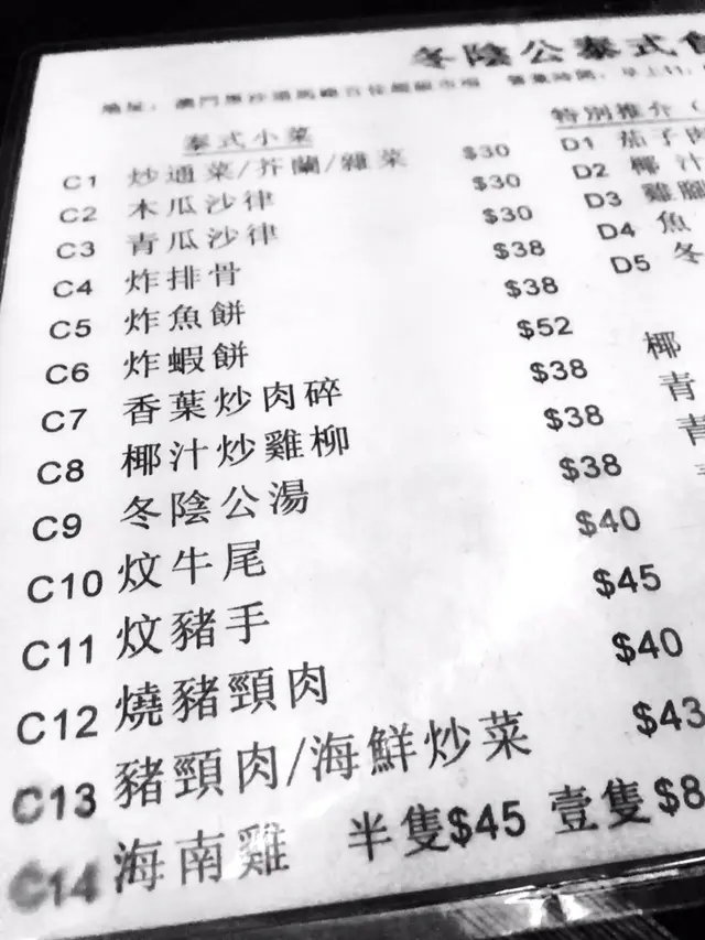 出色泰式快飯 檸檬愛吃等级32013-12-292K 瀏覽 關注 「冬陰公」確實位置其實在黑沙環百佳二樓,從多年前百佳未裝修就一直係到屹立不倒,永遠坐滿人。因為檸檬家一直係無飯家庭,住在附近所以呢度係檸檬其中一間由細食到大既食店老闆是泰國華僑,呢度出品當然正宗喇!泰國菜很合我口味,好幾家泰國菜也是蠻常吃的,但黎呢度多數都係食個飯或者食碗麵一止心癮。但一般泰式菜式這裡都有供應的,好多街坊都一家人黎叫餸食飯晚飯時間,就食碗冬蔭功貴刁出面叫冬蔭功多數都一大鍋。一個人想食冬蔭功係呢度叫碗貴刁就剛好吾會食吾晒。因為是湯麵的關係所以我覺得吾會太辣太重口味。今日想叫炒通菜但已經賣晒,你都想食就早d去na:)媽咪每次都食呢個,雞腳排骨飯,話佢d湯好味又炆得入味咁話,但雞腳同排骨都吾係我杯茶椰汁冰!$12大大杯。飲落應該係盒裝/罐裝椰漿戈d,吾會好香但飲落好濃郁。個人泰國菜必配今次食得好飽冇叫,但推介食佢地既大菜糕同糖水。經濟實惠又好食。尤其係椰汁黑糯米!醃類亦好值得叫,醃粉絲等等,酸酸地好開胃,以前細個有時會當正餐食添…查看更多以上食評乃用戶個人意見 , 並不代表OpenRice之觀點。讚好分享出色泰式快飯 冬陰公泰式食店 https://s.openrice.com/QrLT1cwuZ00檢舉 張貼 評分4味道3環境4服務4衛生4抵食推介美食醃粉絲炒通菜用餐途徑堂食