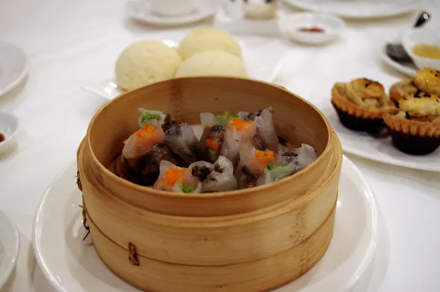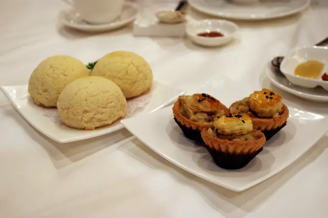 去澳門出席壽宴,場地好大,樓底高,好典型大飯店格局,粉金色主色不俗氣鮮什果海蝦沙律:擺盤好靚,蛋糕🎂造型,有壽星公糖公仔,都唔捨得拆散佢,大蝦爽口,芒果皮酸甜開胃,入面什果粒爽甜多汁,不會太多沙律醬包裹,好味的開胃菜,醬燒琵琶乳豬全體:有配埋薄饅頭片(我唔知呢啲點叫)乳豬皮脆,肥膏不多,配饅頭皮減少油膩感,好味松露拌水芹香炒桂花蚌:好多蚌肉(幾乎遮晒啲菜)蚌肉落了好多松露油炒,好香!蚌肉清爽爽脆,蔬菜都不失禮,有蜜糖豆、馬蹄、西芹片、蓮藕片,都是我喜歡的爽脆蔬菜!配松露油好味!乾煸什菌炒雪花牛柳粒:豉油王竹媽媽的,牛柳粒炒得鹹香,有點點筋可接受,配料是我喜歡濃味有𡁻口的茶樹菇,蜜糖豆爽脆正常松茸螺頭燉花膠去皮雞湯:又濃又清甜,花膠嫩滑,好滋補!唔喜歡中湯嘅我都飲咗兩碗清蒸珍珠龍躉:細龍躉幾嫩滑,魚眼都突晒出來(新鮮)甜豉油吊味剛好,唯一是點解青蔥絲咁少?上湯波士頓龍蝦伊麵底:龍蝦肉爽口,上湯不會太鹹,薄薄的獻汁,伊麵正常!蒜香吊燒雞:食了雞胸肉,肉質正常不嚡,ok蠔皇荷葉飯:我只食了點飯,飯粒索晒啲蠔油味,幾香又飽滿,好味雙色壽包:無食陳皮紅豆沙湯丸:紅豆大粒,起晒沙夠濃,丸子煙韌,不會過甜!好味生果盤:擺盤靚,西瓜🍉甜,哈蜜瓜爽脆!好味!以平常不喜歡圍菜的我,都覺得今晚菜式有特式又好味,用料幾靚店員有禮勤快!食到有驚喜的圍菜…查看更多