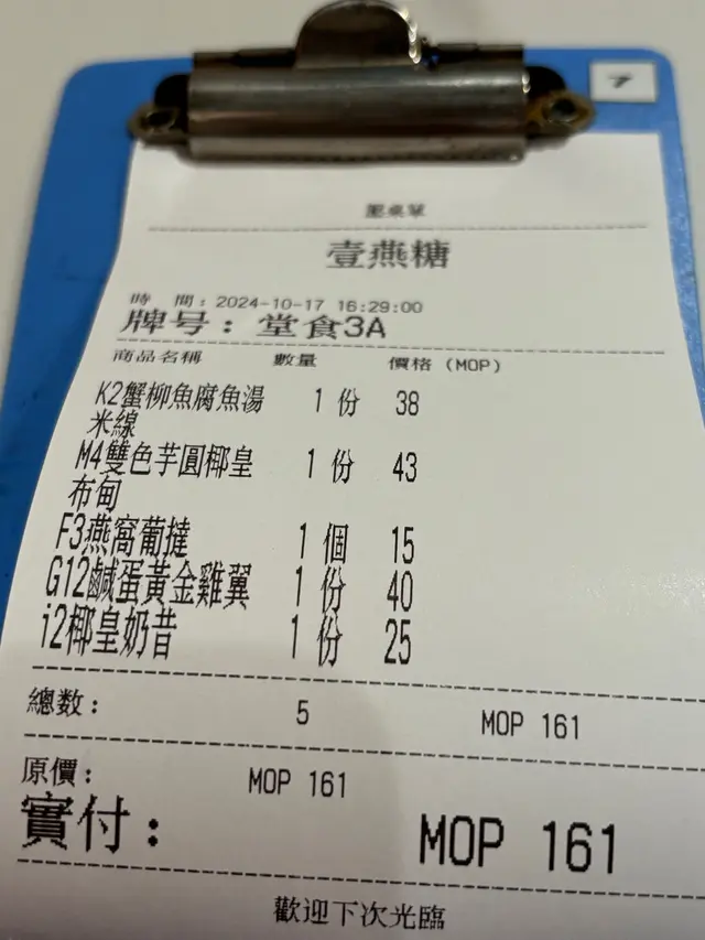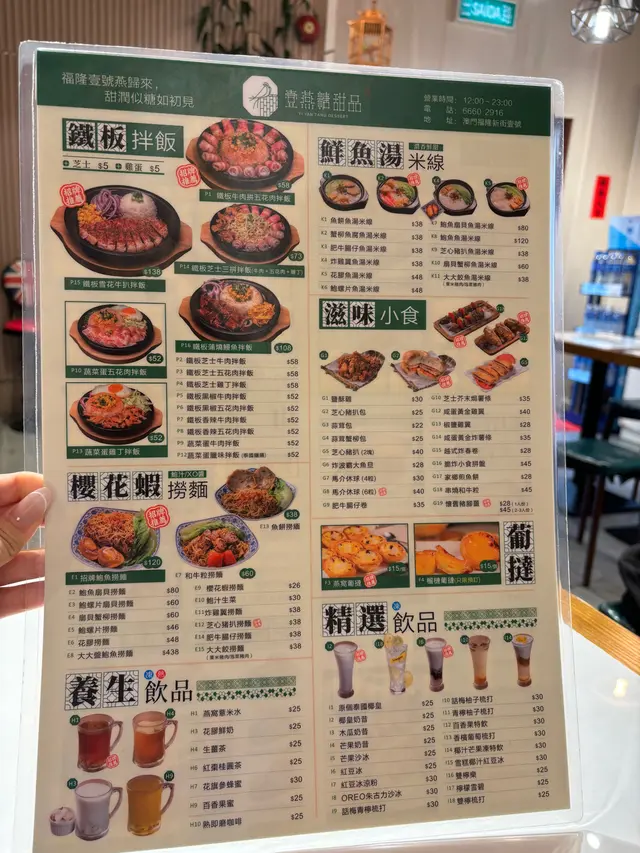 壹燕糖甜品 (新马路) 网址: https://s.openrice.com/QrLS1PE4600 地址: 澳門新馬路福隆新街1號地舖 电话: +853 66602916
